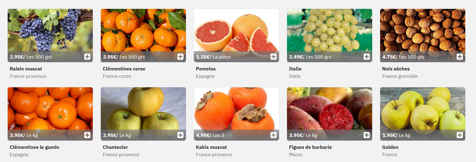 L'idée est d'avoir une cohérence dans le design, et de permettre également de pouvoir afficher des produits de plusieurs commerçants dans une sélection qui reste visuellement agréable.