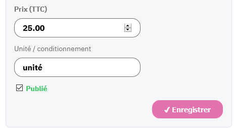 Si la case est coché, "Publié" passe en vert pour indiquer que le produit sera visible