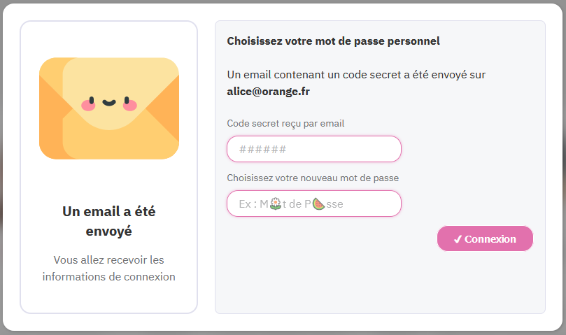 💡 Vous devez consulter vos emails pour récupérer le code secret mais attention à ne pas fermer cette fenêtre car un